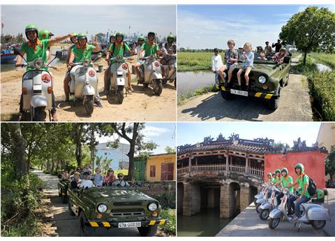 Hoi an Jeep and Vespa Tour Combine, if you are group of friend, or family or meeting are you looking for some thing fun, special for your trip, this hoi an jeep and vespa tour will be great way for you to see hoi an, and so much fun, you get both experience, ride vespa and sit behind open army jeep, if your family, group of friend, from 4 people you can book this tour